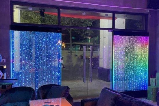 Il pannello è costruito in policarbonato trasparente nel quale scorrono una moltitudine di bolle dal basso verso l'alto in maniera rettilinea lungo i vari scompartimenti,,creando un'effetto suggestivo ed ipnotico,il movimento delle bolle crea un fruscio tenue,tipo un ruscello a seconda della quantità di bolle da voi impostata.