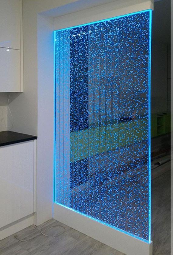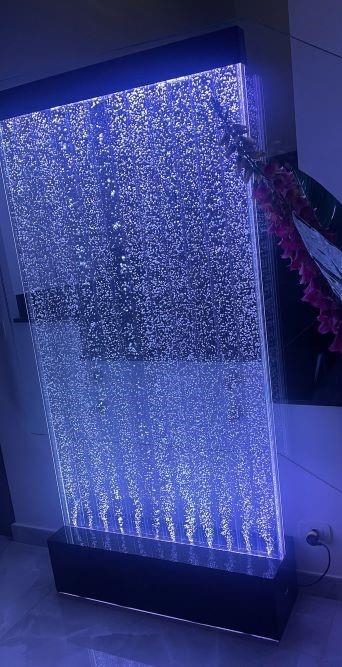 Il pannello è costruito in policarbonato trasparente nel quale scorrono una moltitudine di bolle dal basso verso l'alto in maniera rettilinea lungo i vari scompartimenti,,creando un'effetto suggestivo ed ipnotico,il movimento delle bolle crea un fruscio tenue,tipo un ruscello a seconda della quantità di bolle da voi impostata.
