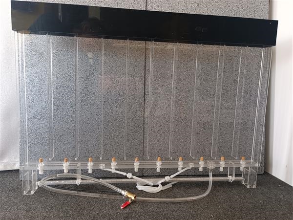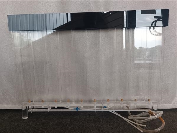Pannello suddiviso in scompartimenti lungo i quali scorrono le bolle d'aria dal basso verso l'alto.
